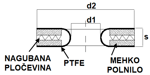 - PTFE srajčka lahko prekriva celotno zgornjo in spodnjo površino tesnila ali pa samo delno